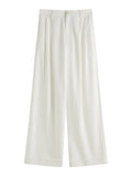 Women’s White Wide-Leg Trousers – High-Waist Loose Fit Elegant Tailored Pants for Work & Casual Wear
